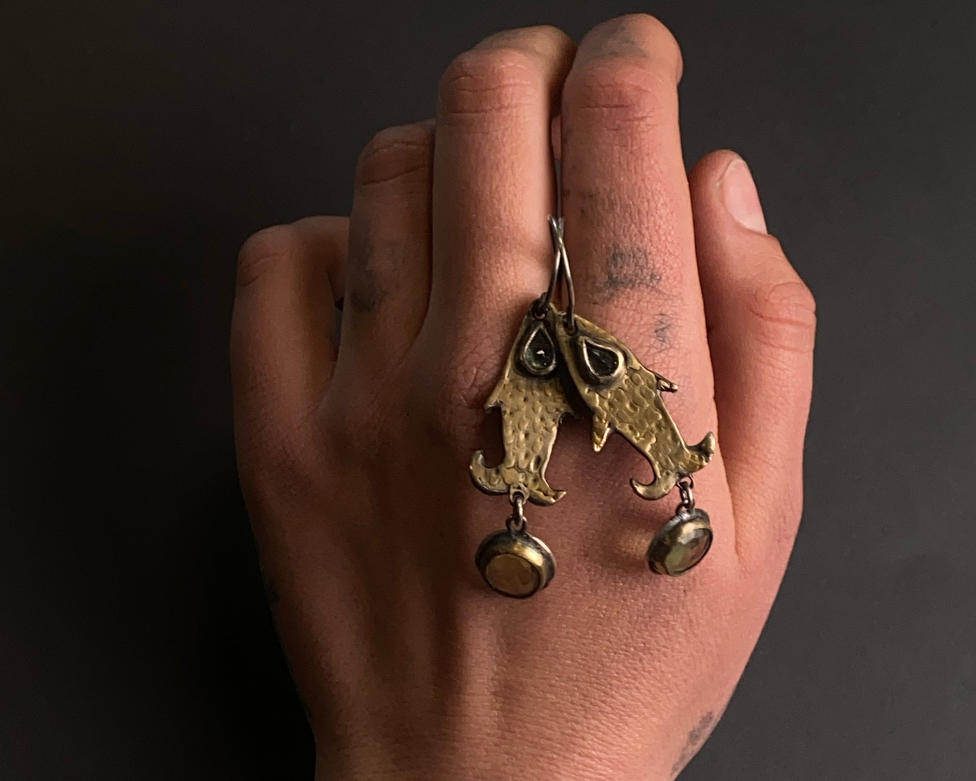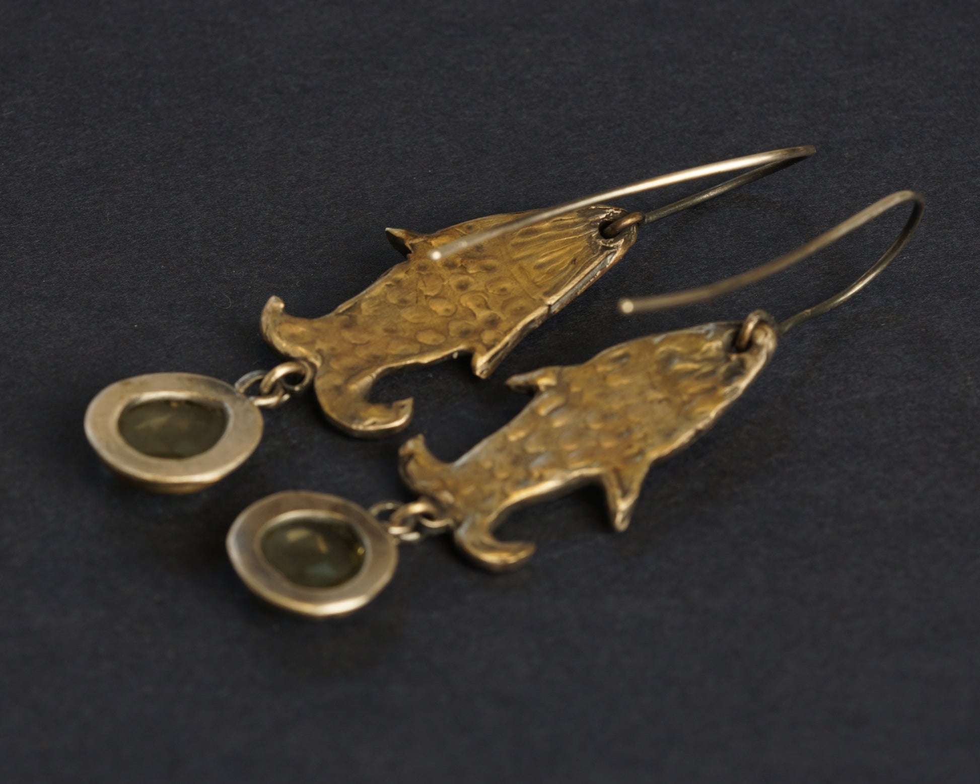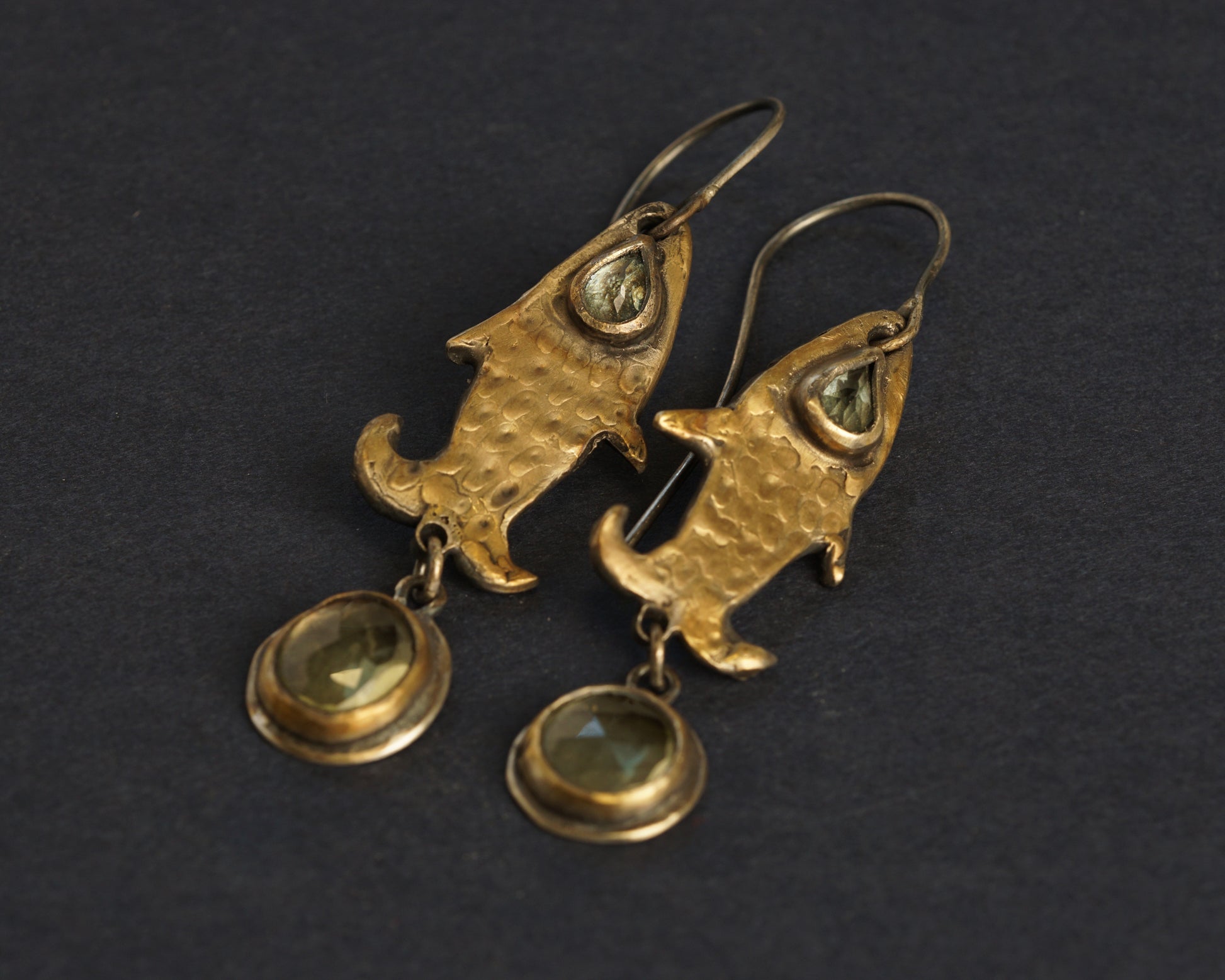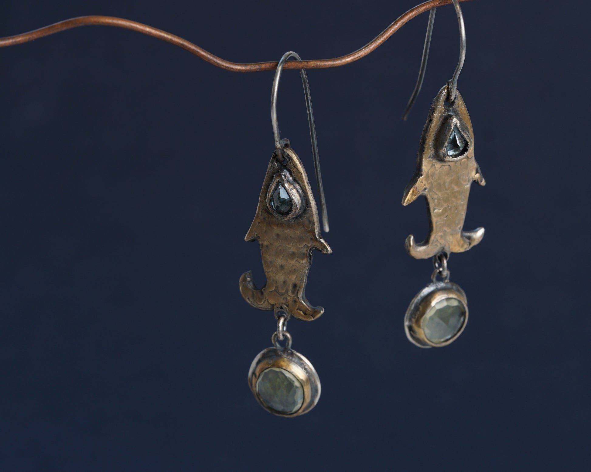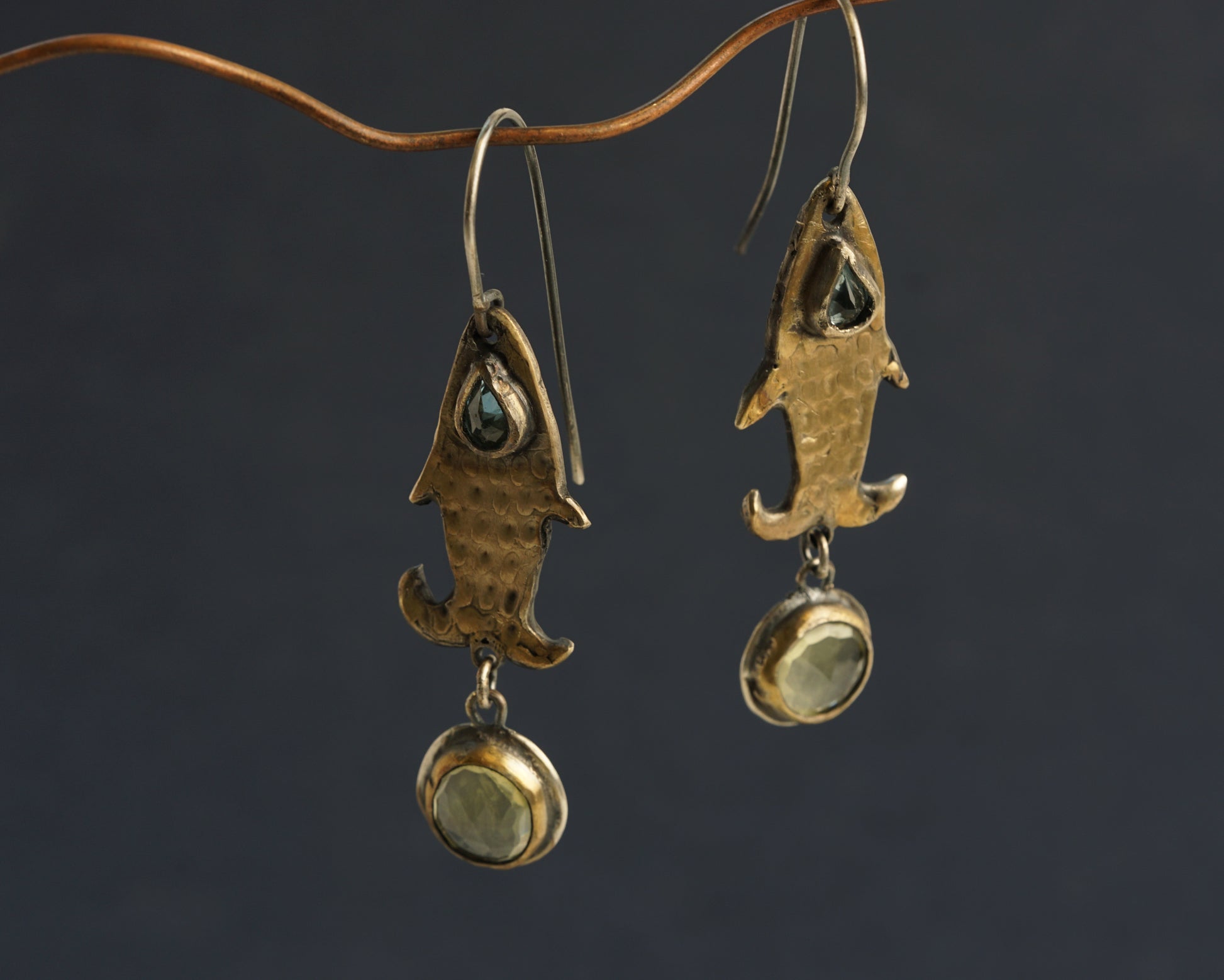 Gold-Plated Fish Earrings with Blue Topaz and Lemon Quartz