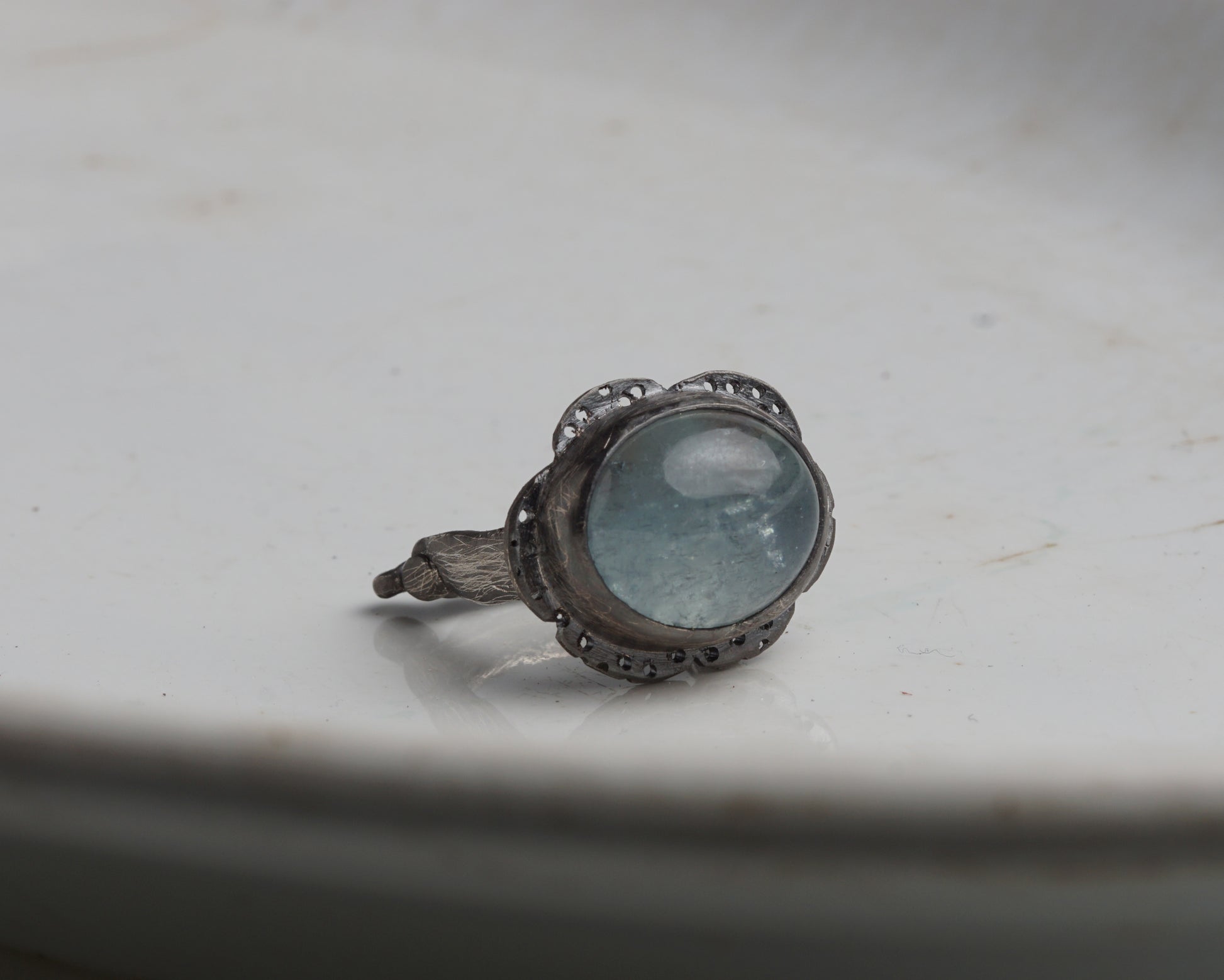 Mist-Bound Aquamarine Silver Ring