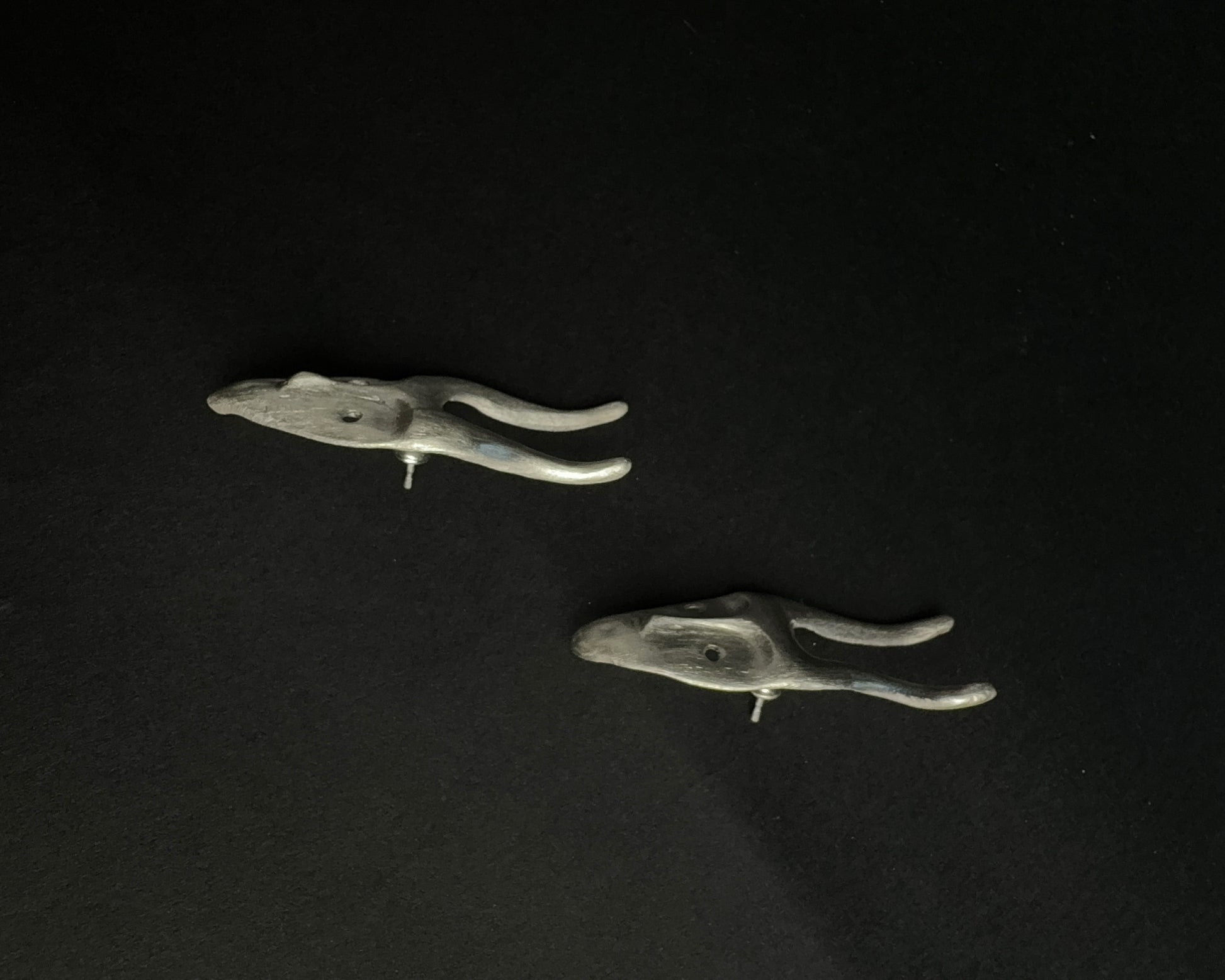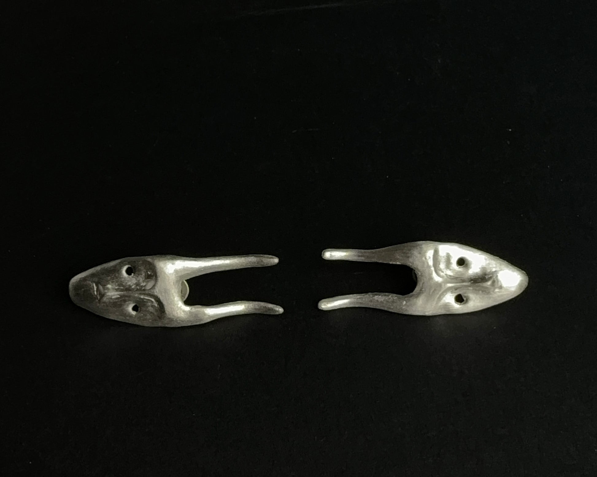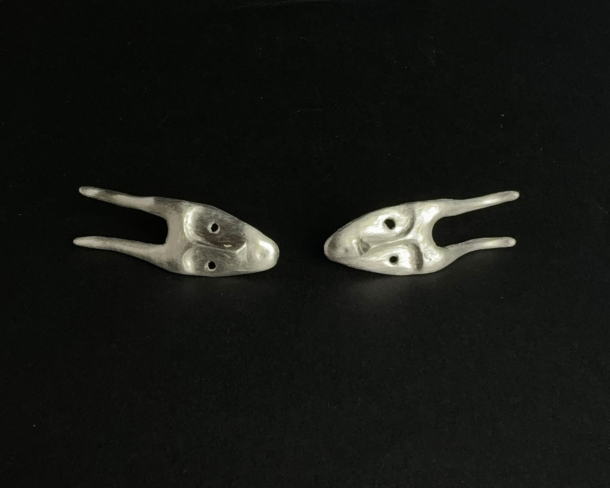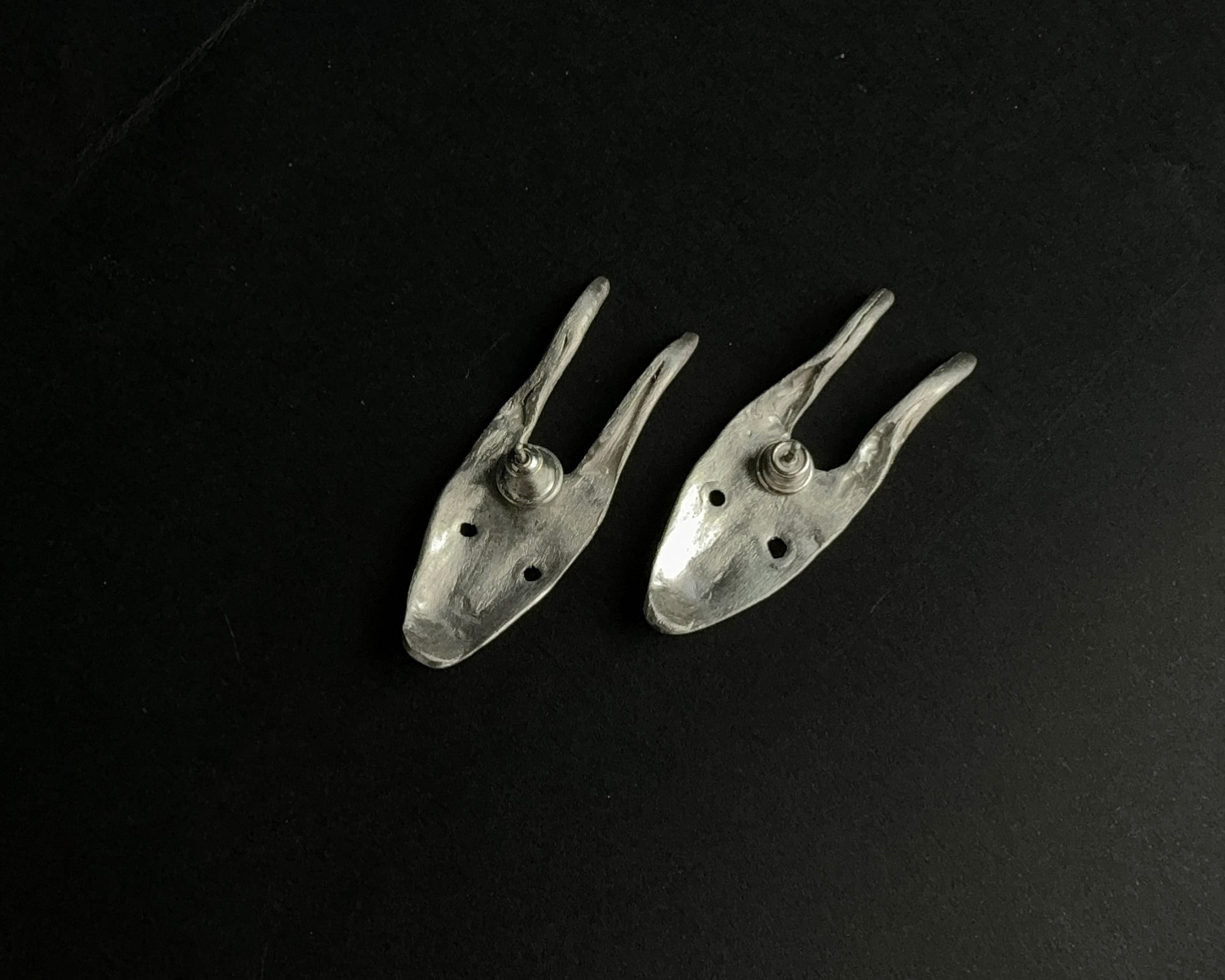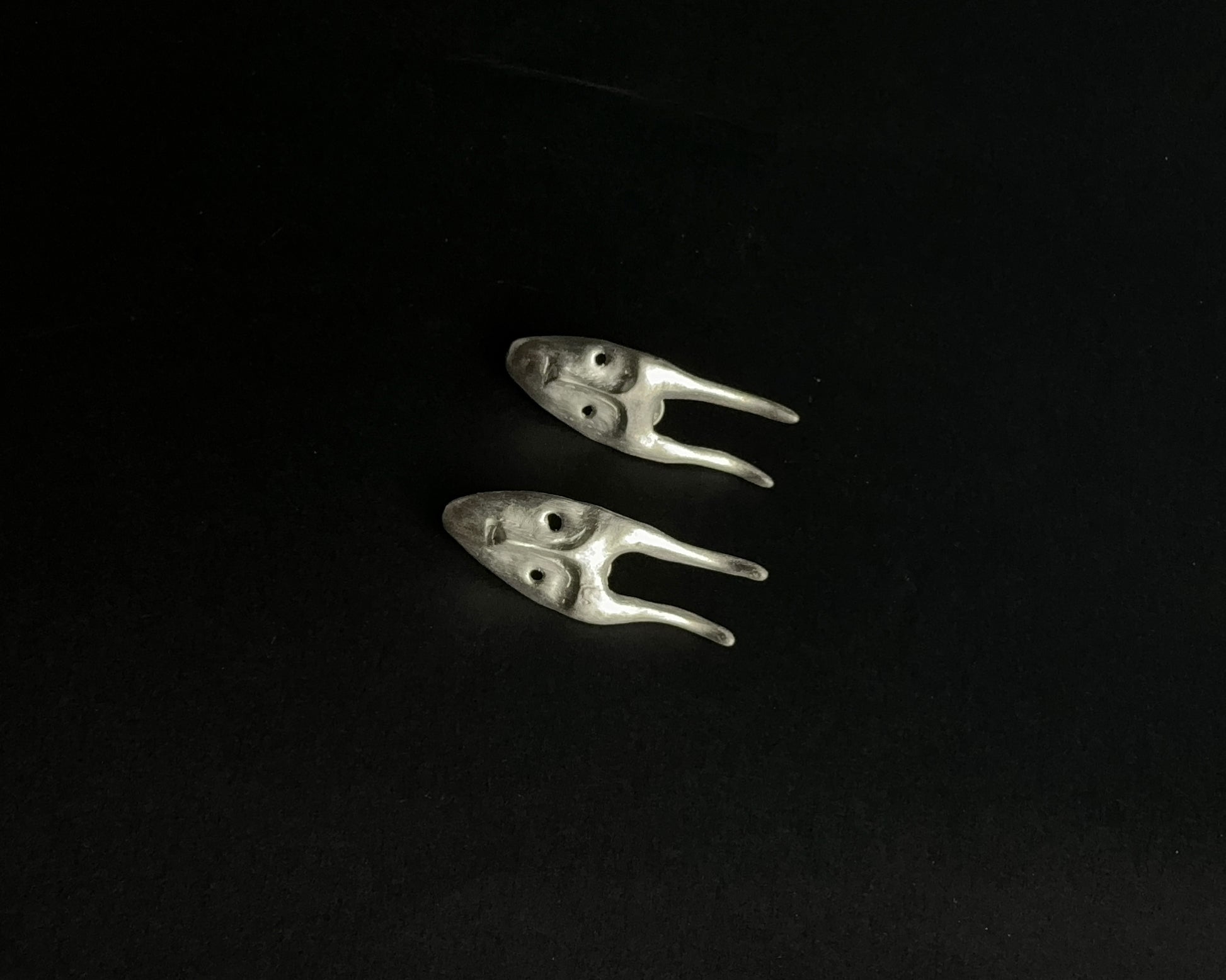 Small, striking handcrafted earrings crafted from 925 sterling silver in the shape of ethnic masks. They feature a toggle clasp and a light matte finish.